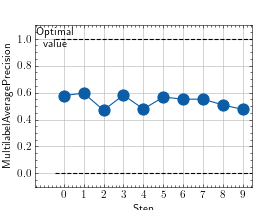 >>> # Example plotting multiple values >>> import torch >>> from torchmetrics.classification import MultilabelAveragePrecision >>> metric = MultilabelAveragePrecision(num_labels=3) >>> values = [ ] >>> for _ in range(10): ... values.append(metric(torch.rand(20,3), torch.randint(2, (20,3)))) >>> fig_, ax_ = metric.plot(values)