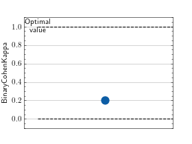 >>> from torch import rand, randint >>> # Example plotting a single value >>> from torchmetrics.classification import BinaryCohenKappa >>> metric = BinaryCohenKappa() >>> metric.update(rand(10), randint(2,(10,))) >>> fig_, ax_ = metric.plot()