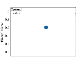 \[F_{1} = 2\frac{\text{precision} * \text{recall}}{(\text{precision}) + \text{recall}}\]The metric is only proper defined when \(\text{TP} + \text{FP} \neq 0 \wedge \text{TP} + \text{FN} \neq 0\) where \(\text{TP}\), \(\text{FP}\) and \(\text{FN}\) represent the number of true positives, false positives and false negatives respectively. If this case is encountered a score of zero_division (0 or 1, default is 0) is returned.