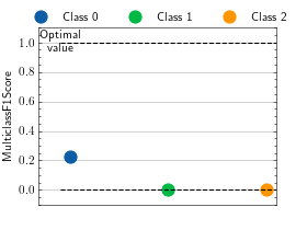 >>> from torch import randint >>> # Example plotting a single value per class >>> from torchmetrics.classification import MulticlassF1Score >>> metric = MulticlassF1Score(num_classes=3, average=None) >>> metric.update(randint(3, (20,)), randint(3, (20,))) >>> fig_, ax_ = metric.plot()