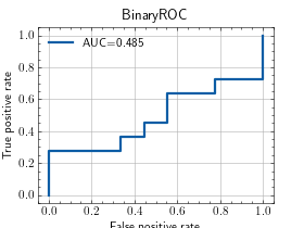 >>> from torch import rand, randint >>> from torchmetrics.classification import BinaryROC >>> preds = rand(20) >>> target = randint(2, (20,)) >>> metric = BinaryROC() >>> metric.update(preds, target) >>> fig_, ax_ = metric.plot(score=True)