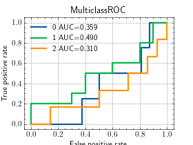>>> from torch import randn, randint >>> from torchmetrics.classification import MulticlassROC >>> preds = randn(20, 3).softmax(dim=-1) >>> target = randint(3, (20,)) >>> metric = MulticlassROC(num_classes=3) >>> metric.update(preds, target) >>> fig_, ax_ = metric.plot(score=True)
