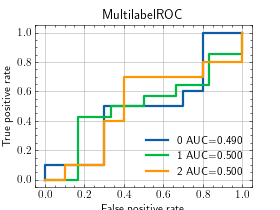 >>> from torch import rand, randint >>> from torchmetrics.classification import MultilabelROC >>> preds = rand(20, 3) >>> target = randint(2, (20,3)) >>> metric = MultilabelROC(num_labels=3) >>> metric.update(preds, target) >>> fig_, ax_ = metric.plot(score=True)