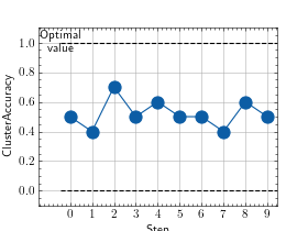 >>> # Example plotting multiple values >>> import torch >>> from torchmetrics.clustering import ClusterAccuracy >>> metric = ClusterAccuracy(num_classes=4) >>> values = [ ] >>> for _ in range(10): ... values.append(metric(torch.randint(0, 4, (10,)), torch.randint(0, 4, (10,)))) >>> fig_, ax_ = metric.plot(values)