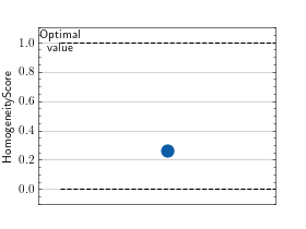 >>> # Example plotting a single value >>> import torch >>> from torchmetrics.clustering import HomogeneityScore >>> metric = HomogeneityScore() >>> metric.update(torch.randint(0, 4, (10,)), torch.randint(0, 4, (10,))) >>> fig_, ax_ = metric.plot(metric.compute())