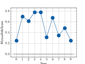 >>> # Example plotting multiple values >>> import torch >>> from torchmetrics.clustering import MutualInfoScore >>> metric = MutualInfoScore() >>> values = [ ] >>> for _ in range(10): ... values.append(metric(torch.randint(0, 4, (10,)), torch.randint(0, 4, (10,)))) >>> fig_, ax_ = metric.plot(values)